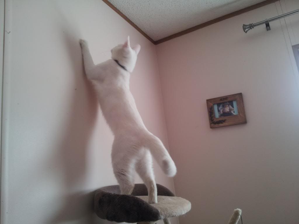 My new kitty, Jinks, has an intense desire to chew on hard things, especially wood. He's about a year and a half, so I don't think this is a kitten issue. His favorites are those little wooden sticks you find in room diffusers (luckily the fragrance oil had long dried up), the hard plastic sticks of dangly cat toys, wooden dowels, the corner of my cell phone if he's next to me while I'm holding it, etc. Obviously I'd like to redirect his chewing to something less dangerous/expensive!